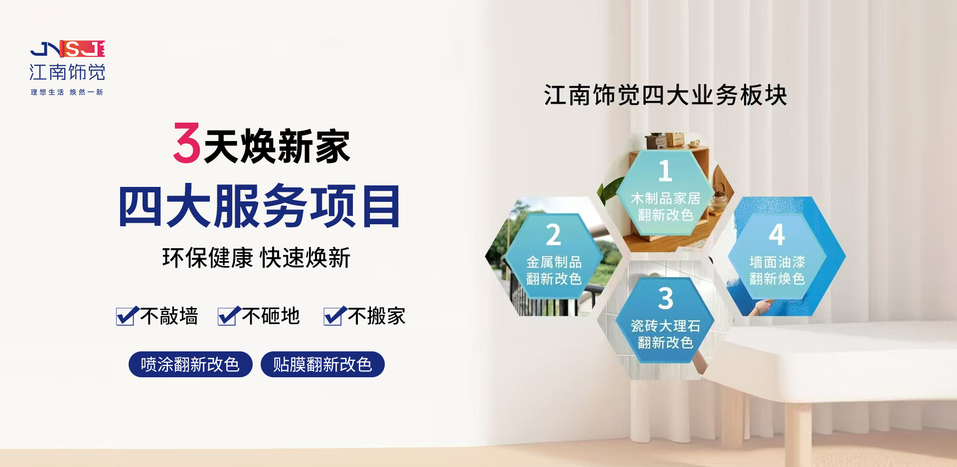 品牌介紹BRAND INTRODUCTION江南飾覺家居煥新連鎖品牌誕生于2023年,由浙江家居修護行業(yè)優(yōu)秀一眾人士共同創(chuàng)建,總部坐落于浙江溫州,是一家專業(yè)致力于家居煥新改造連鎖品牌,老房陳舊裝修家居煥新、省錢、省心、快捷、實現煥新家,為消費者打造高···